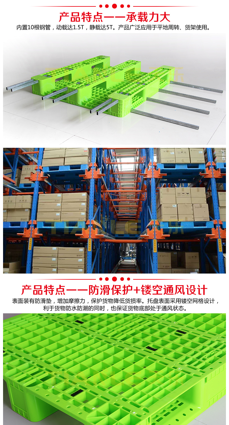 不改變塑料托盤(pán)結(jié)構(gòu)情況下如何提升其載重能力? 托盤(pán)結(jié)構(gòu)設(shè)計(jì) 合理性關(guān)系到載重能力,在托盤(pán)模具設(shè)計(jì)的時(shí)候很多時(shí)候預(yù)留好 穿鋼管位置 ,以便滿足客...